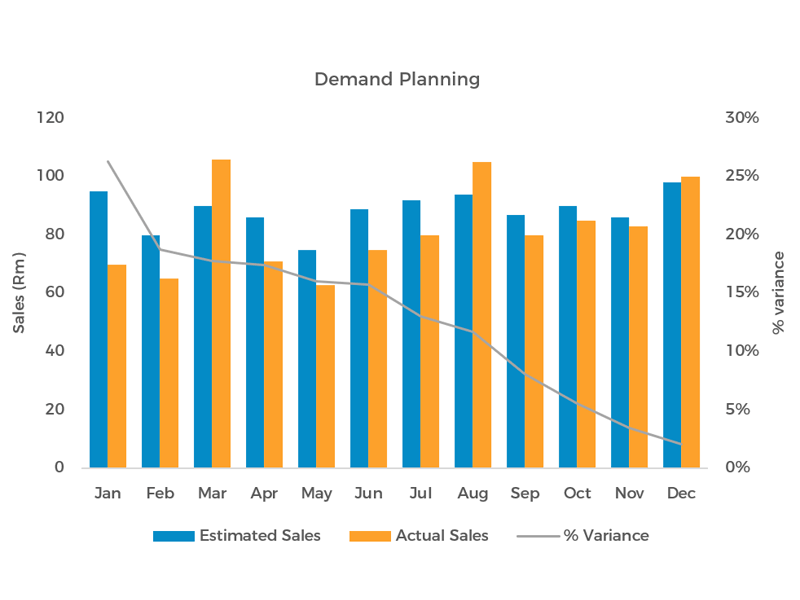 Evaluation of current demand plan accuracy and creation of solutions to reduce gaps and improve accuracy based on market and marketing information.